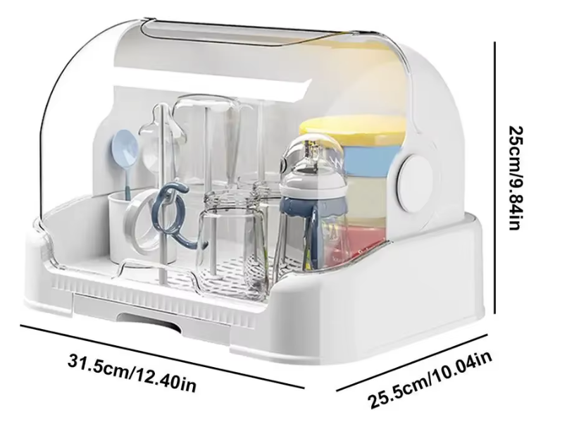 Fabriqué en PP durable, cet accessoire est léger, robuste et facile à transporter. Sa conception compacte est idéale pour la maison comme pour les voyages. Adapté à une large gamme de biberons, tétines, tasses et accessoires d’allaitement, il devient un indispensable du quotidien des jeunes parents.