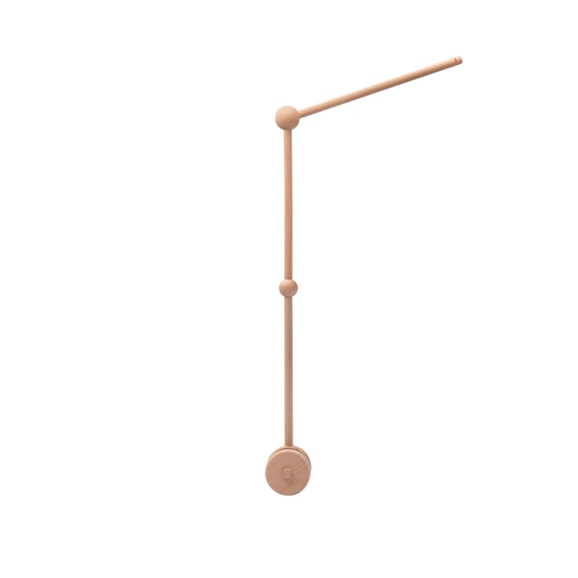 Ce support en bois fixe le mobile de bébé au-dessus de son lit.