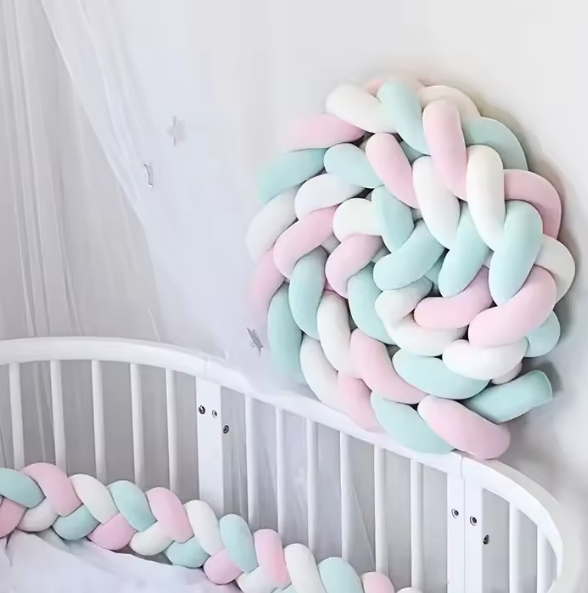 De plus, les couleurs vives de ce tour de lit en forme de tresse diffusent une ambiance joyeuse et familiale.