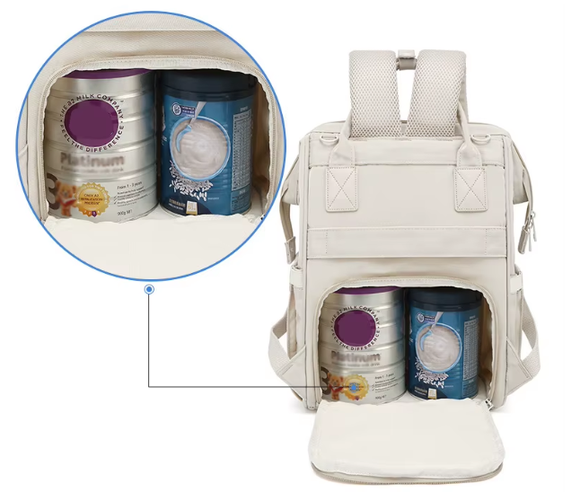 — Biberons toujours prêts : Poche isotherme intégrée.